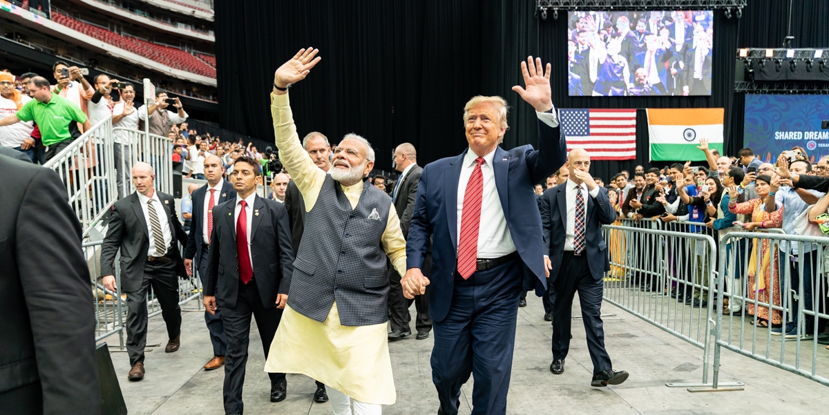 ‘हाउडी, मोदी!’ कार्यक्रम में अमेरिकी राष्ट्रपति डोनाल्ड ट्रंप के साथ प्रधानमंत्री नरेंद्र मोदी! ह्यूस्टन, टेक्सास में कार्यक्रम, 22 सितंबर, 2019। फोटो: व्हाइट हाउस, विकिमीडिया कॉमन्स के माध्यम से सार्वजनिक डोमेन