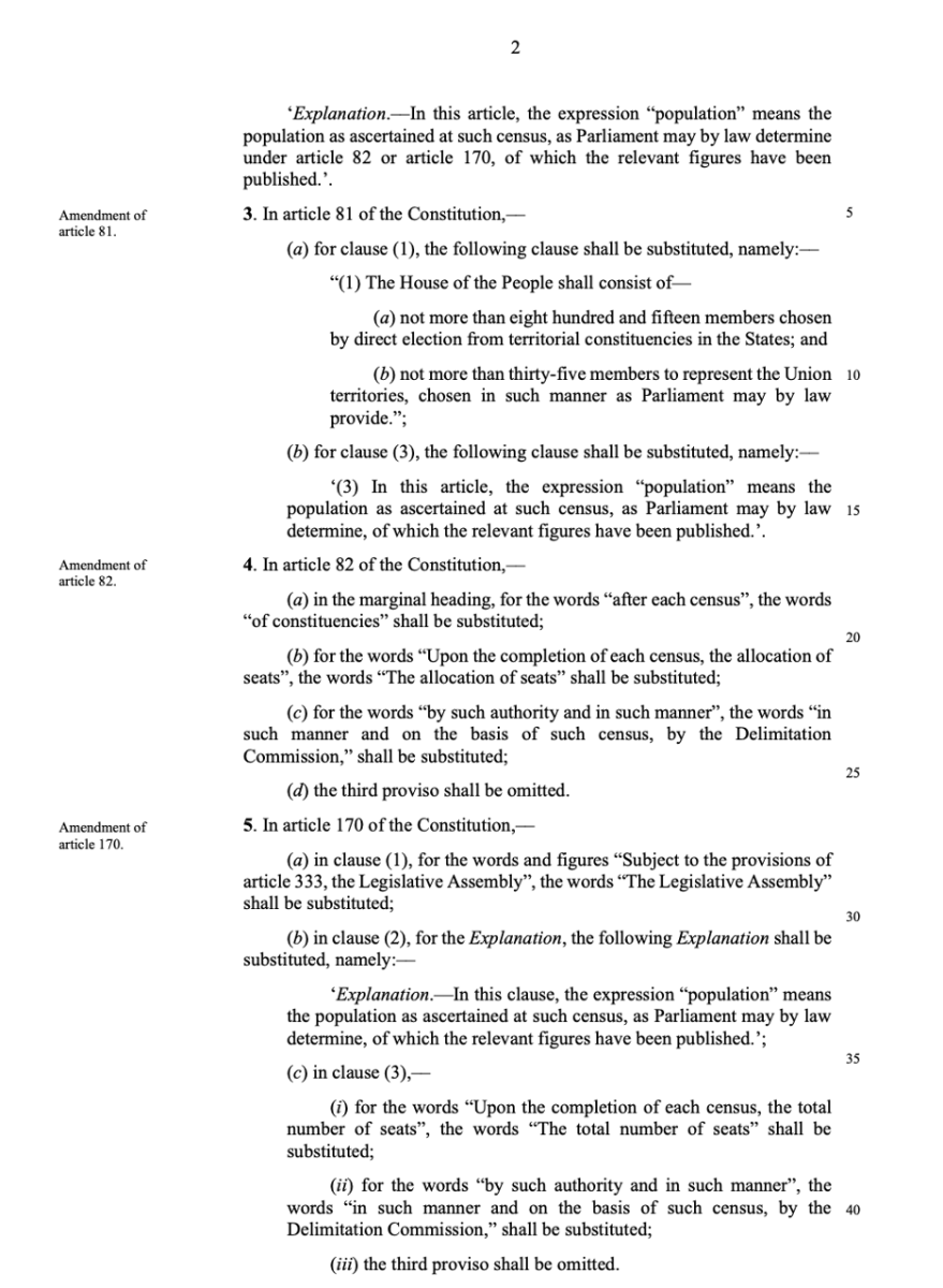 परिसीमन को जनगणना से जोड़ना और फिर एक परिसीमन आयोग, जो एक निश्चित सार्वजनिक डेटासेट का पालन करता है, ने जनता का विश्वास आकर्षित किया। अब तक चीजें इसी तरह से की गई हैं। संविधान में यही प्रक्रिया है. “जनसंख्या” की संवैधानिक परिभाषा सीट आवंटन के लिए 1971 की जनगणना और सीमा निर्धारण के लिए 2001 की जनगणना थी। अब, जनसंख्या का मतलब कोई भी जनगणना होगी “जैसा कि संसद कानून द्वारा निर्धारित करेगी”।