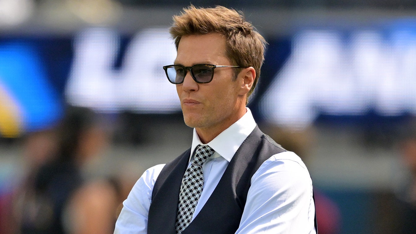 टॉम ब्रैडी 5 अक्टूबर, 2025 को सोफ़ी स्टेडियम में लॉस एंजिल्स चार्जर्स और वाशिंगटन कमांडर्स के बीच खेल से पहले देखते हैं। (जेन कामिन-ओन्सिया/इमैगन इमेजेज)