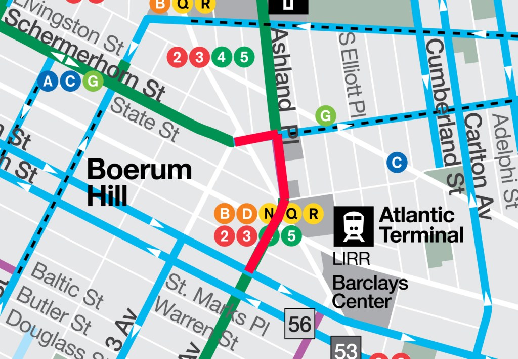 - डीन स्ट्रीट और फ्लैटबश के बीच चौथा एवेन्यू।