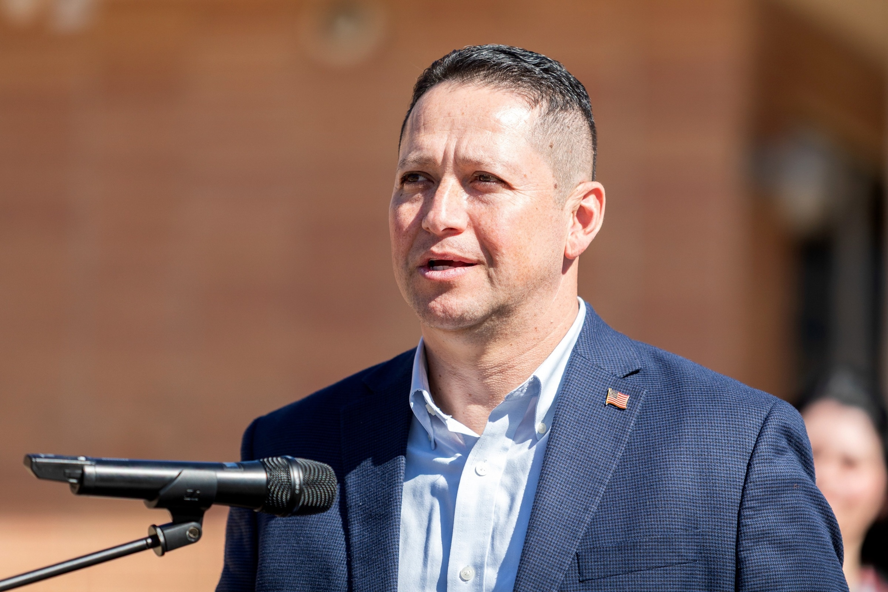 प्रतिनिधि टोनी गोंजालेस 6 फरवरी, 2026 को नए विल्शेयर सुरक्षा प्रशिक्षण केंद्र के सामने नॉर्थ ईस्ट इंडिपेंडेंट स्कूल डिस्ट्रिक्ट में स्कूल सुरक्षा संवर्द्धन के बारे में एक संवाददाता सम्मेलन के दौरान बोलते हैं।